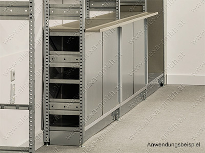 H-Profile werden auf Fachbodenfront geklebt (wird bei Bestellung mit Fachboden vormontiert geliefert, sonst mit Hochleistungsklebeband zur Selbstmontage).